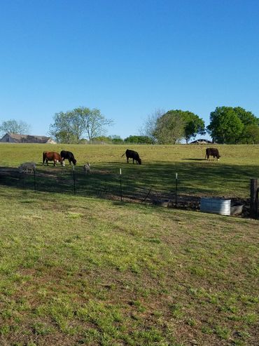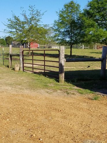 - Grass pastures with lean-to shelter, water tanks and horse-net fencing